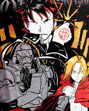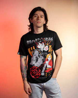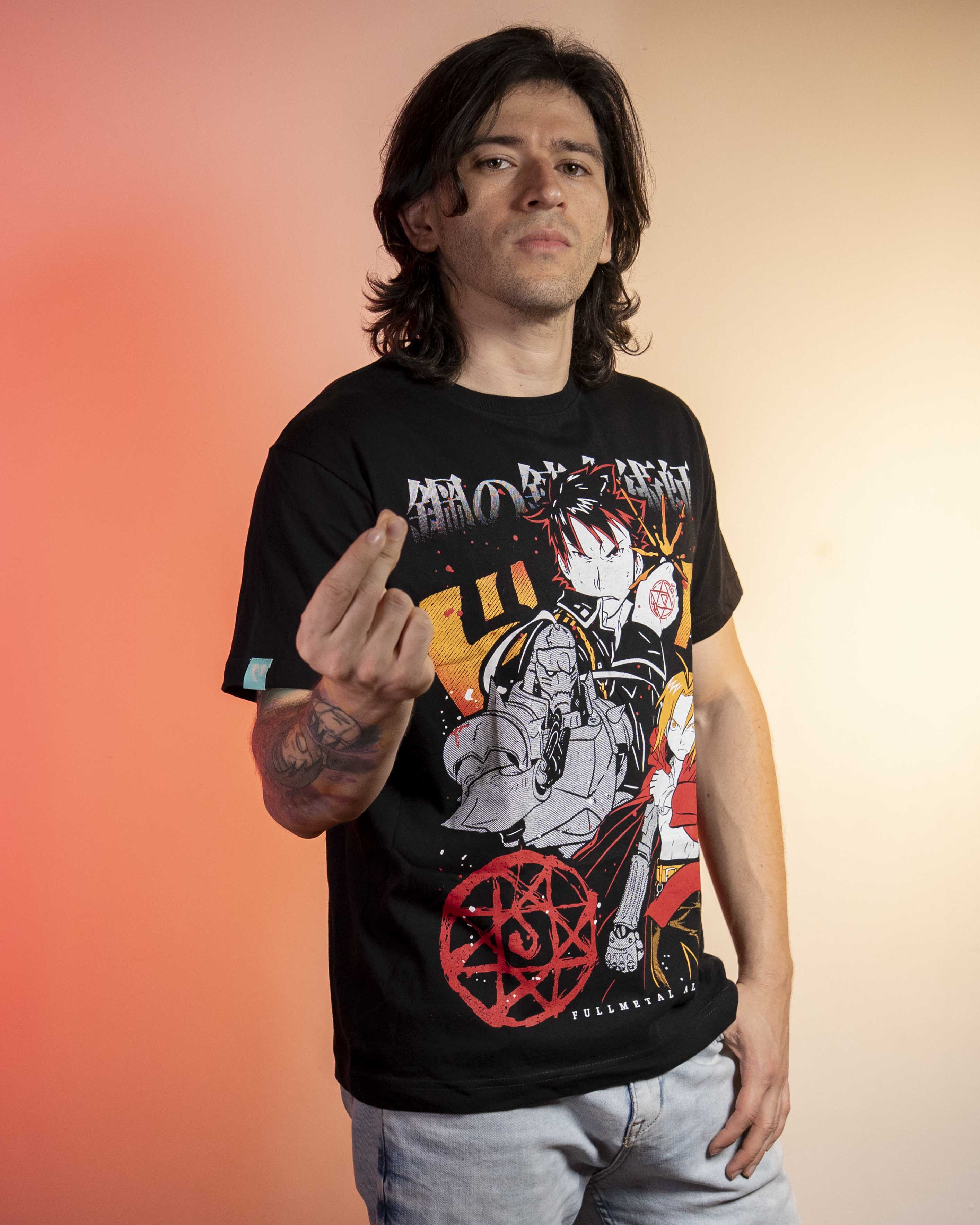 Esta camiseta reúne a los legendarios hermanos Elric 🔥🤝⚗️ junto al implacable Roy Mustang 🔥, en un diseño que destila poder, sacrificio y hermandad.